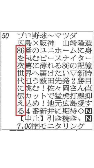 野球のテレビ欄です